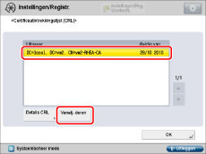 Selecteer de certificaatintrekkingslijst die u wilt verwijderen → druk op [Verwijderen].