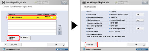Selecteer het sleutelpaar voor het gebruikerscertificaat dat u wilt bevestigen → druk op [Certificaat details] → [Certif. contr.].