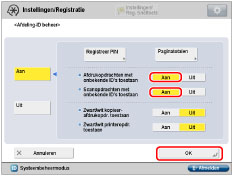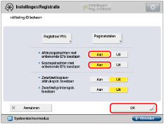 De instellingen <Afdrukopdrachten met onbekende ID's toestaan> en <Scanopdrachten met onbekende ID's toestaan> zijn alleen ingeschakeld wanneer de machine is voorzien van de afdrukfunctie en de functie scannen op afstand. |