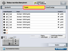 U kunt gedetailleerde informatie over het papier bekijken. U kunt ook het type papier opslaan/instellen dat moet worden geladen in een bepaalde papierbron, zoals een papierlade.