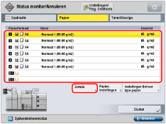 Selecteer het papier dat u wilt controleren → druk op [Details].