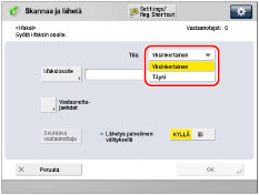 [Kyllä]: | Lähettää asiakirjat palvelimen välityksellä. Voit lähettää asiakirjoja vastaanottajille internetin välityksellä samalla tavalla kuin sähköpostilähetyksiä. |