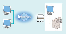 Jos globaali IP-osoite on nimetty tulostin/monitoimilaitteelle, voit luoda verkkoympäristön jolla pienennät luvattoman pääsyn riskiä asentamalla turvaohjelman, kuten palomuurin joka torjuu pääsyn ulkoisista verkoista. Jos haluat nimetä globaalin IP-osoitteen ja käyttää tulostin/monitoimilaitetta, ota yhteys verkkovastaavaan. |