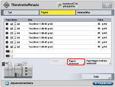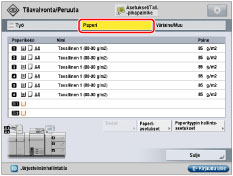 Voit tarkistaa paperitiedot. Voit myös tallentaa/asettaa paperilähteeseen, kuten paperikasettiin, asetettavan paperin tyypin.