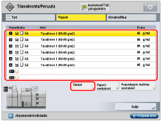 Valitse paperi jonka haluat tarkistaa → paina [Tiedot].