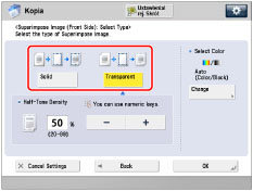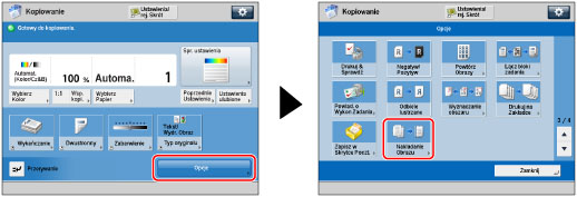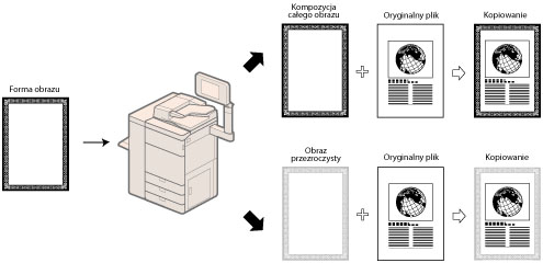 Aby kopiować w trybie nakładania obrazu, wcześniej trzeba zarejestrować obraz formy w pamięci urządzenia.(Patrz "Rejestrowanie form dla trybu Nakładanie obrazu.") |