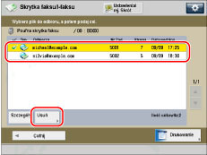 Sprawdzanie szczegółowych informacji/Usuwanie pliku zapisanego w poufnej skrytce faksu