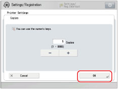 Press [-] or [+] to enter the number of copies.