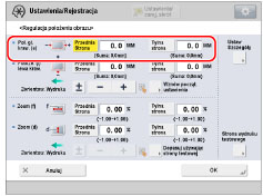 Po ponownym otwarciu ekranu po jego zamknięciu za pomocą przycisku [OK], wartości na ekranie wrócą do '0'.Niezależnie od tego, wyregulowana wartość nadal ma zastosowanie w polu Całkowite.Jeżeli czynności zostaną powtórzone, należy sprawdzić długość 'e' na nowej stronie testowej i wprowadzić wartości ponownie. |