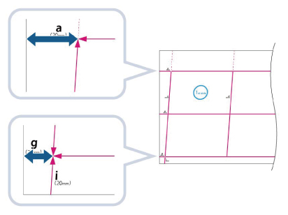 Znacznik 'g' jest drukowany po lewej stronie krawędzi głównej, natomiast znacznik "a" jest drukowany po prawej stronie krawędzi głównej, zgodnie z kierunkiem podawania.