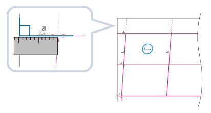Jeżeli pozycja obrazu różni się znacznie od żądanej, dokładność korekcji można poprawić drukując kilka stron testowych i wykorzystując średnią, zmierzoną długość. |