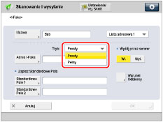 Jeśli dokumenty nie są przesyłane poprzez serwer i jeżeli adres IP odbiorcy nie jest zarejestrowany na serwerze DNS, nazwę domeny należy wprowadzić w następującym formacie:(użytkownik)@(adres IP odbiorcy). |
