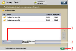 2 | [Sprawdź inform. o nośnikach] Naciśnij, aby wyświetlić szczegółowe informacje o Nośniku pamięci. |