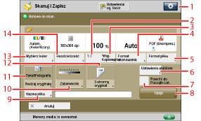 8 | [Opcje] Naciśnij, aby określić przydatne funkcje skanowania, takie jak skanowanie oryginałów o różnych formatach lub dzielenie oryginałów na wiele partii. |