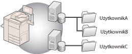 Metoda jest odpowiednia w przypadku, gdy każdy z użytkowników chce wysyłać pliki do preferowanego folderu lub odbiorcy, który nie jest widoczny dla innego użytkownika.