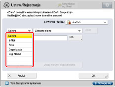 Funkcja ta umożliwia wyszukiwanie odbiorców, znajdujących się na serwerze LDAP, bez ustawiania za każdym razem warunków wyszukiwania.
