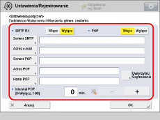 Naciśnij na [Wyłącz] dla <RX SMTP> → [Włącz] dla <POP>.