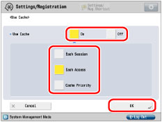 [Each Session]: | Checks the date and time information every time the machine starts up, and downloads from the server if the contents have been updated, or from the cache if the contents have not been updated. |