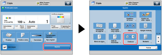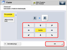 Pode utilizar as teclas de setas no visor do painel digital para fazer cópias com a imagem do original deslocada para o centro ou para um canto.