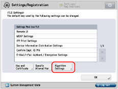 Press [TLS Settings] for [TCP/IP Settings] → [Key and Certificate].