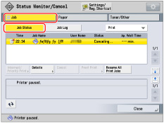 You can check the wait status for print jobs and whether or not an error has occurred during printing. Operations such as printing the document ahead of other documents and temporarily suspending or canceling printing are possible as well.