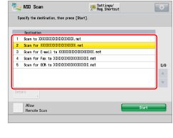Up to 40 destinations are displayed. You cannot use [Send for OCR to "computer name"] when selecting the destination. If you want to use the OCR function, see "PDF/XPS/OOXML pesquisável." |