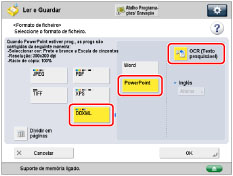 Mesmo que selecione [OCR (Texto pesquisável)], a máquina pode não conseguir detetar corretamente o texto nalguns casos.(Consulte "If OCR (Text Searchable) Performs Inadequately.") |
