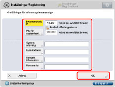 [Kontaktinformation]: | Tryck på [Kontaktinformation] → skriv den systemansvariges kontaktinformation → tryck på [OK]. |