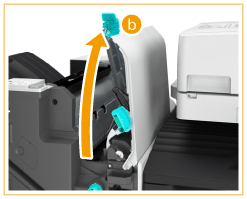 | Open the front cover of the finisher. |