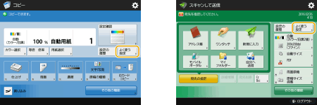 コピー、ファクス、スキャンなどで、同じ組み合わせの設定を使うことが多い場合は、<よく使う設定>として登録しておくと便利です。