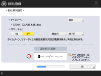 ネットワークに接続するための設定をします。 ![]() ![]() <IPv4を使用>または<IPv6を使用>の<ON>を押し、<次へ>を押します。IPv4/IPv6両方を使用することもできます。 <IPv4を使用>と<IPv6を使用>を<OFF>にして<OK>を押すと、ネットワークの設定を行わずにStep 9へ進みます。 ![]() <IPv4を使用>を<ON>にした場合は、次の設定を行います。 ![]() IPアドレスを自動で取得する場合は、<DHCP>または<Auto IP>を押し、<次へ>または<OK>を押します。 IPアドレスを手動で設定する場合は、<DHCP>または<Auto IP>の選択を解除して、<IPアドレス>、<サブネットマスク>、<ゲートウェイアドレス>を押してそれぞれ入力し、<次へ>または<OK>を押します。 IPv4アドレスの設定について詳しくは、IPv4アドレスを設定するを参照してください。 ![]() <IPv6を使用>を<ON>にした場合は、次の設定を行います。 ![]() ステートレスアドレスを使用する場合は<ON>/使用しない場合は<OFF>を押し、<次へ>を押します。 IPv6アドレスの設定について詳しくは、IPv6アドレスを設定するを参照してください。 ![]() ステートレスアドレスを設定したあと、次の設定を行います。 ![]() 手動アドレスを使用する場合は<ON>/使用しない場合は<OFF>を押し、<次へ>を押します。 手動アドレスを使用する場合は、<手動アドレス>、<プレフィックス長>、<デフォルトルーターアドレス>を押してそれぞれ入力します。 ![]() 手動アドレスを設定したあと、次の設定を行います。 ![]() DHCPv6を使用する場合は<ON>/使用しない場合は<OFF>を押し、<OK>を押します。 | |