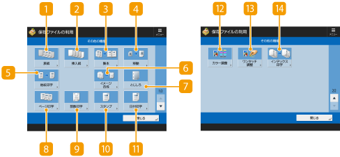 ホームの<保存ファイルの利用>を押したあと、<ボックス>、<アドバンスドボックス>、<ネットワーク>、<メモリーメディア>のいずれかを押してファイルをプリントしようとすると、次の設定画面が表示されます。