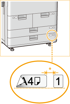 Attach the paper size label at the same height as the cassette number indicator, and approximately 5 mm to the left.