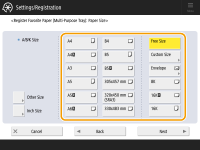 2 | Select the paper size. ![]() ![]() For information on the paper sizes displayed when <Other Size> is pressed, see Available Paper. |