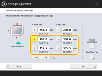 Return to the <Correct Distortion (Trapezoid)> screen, and enter the measured length of <b> and <h> for front and back sides.