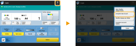 spécifiez les réglages pour la copie. Écran <Accueil>