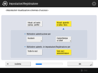 La Guida all'impostazione non può essere avviata nei seguenti casi.Se è impostata l'autenticazione utente o l'autenticazione ID divisione. Se è impostata l'opzione Autentica ID divisione. Se viene effettuata l'autenticazione con scheda. |