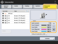 (Statusmonitor) drücken, wird der Bildschirm "Status Monitor" angezeigt, in dem Sie den Tonerstand und sonstige Statusindikatoren überprüfen können.