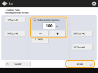 ![]() | Puede ampliar o reducir especificando el porcentaje de aumento (%). Ampliar o reducir especificando el aumento |