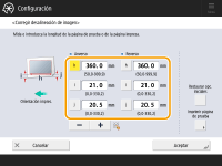 Pulse <Aceptar>.Vuelva a imprimir una página de prueba y compruebe la posición de la imagen como corresponda. Si necesita hacer algún ajuste adicional, repita los pasos anteriores.