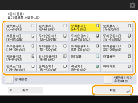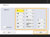 2 | 용지 크기를 선택하고 <확인>를 누릅니다. |