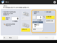 장 페이지의 뒷면에 아무것도 복사하지 않고 비워두려면 5단계에서 <장지>를 선택하십시오. <인쇄 설정>는 구성하지 않아도 됩니다. 기본적으로 <장지>가 한 면에만 인쇄하도록 설정되었기 때문입니다. |