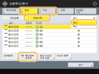 1 | <송신> 또는 <수신> <작업이력>를 누릅니다. |