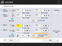 <배율 (d)>: | 입력된 비율에 따라 이송 방향과 수직 방향으로 이미지를 확대하거나 축소합니다. |