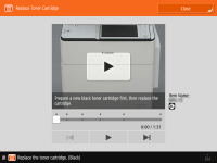 토너 카트리지를 교체할 때 아래에 설명된 지침과 함께 비디오의 지침을 따르십시오.