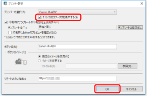 [デバイスのステータスを表示する]にチェックマークを付けて、[OK]をクリックします。