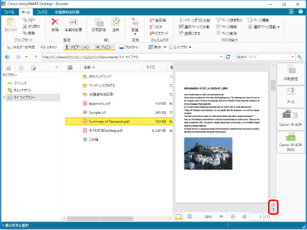 次のいずれかの操作でもページの移動ができます。 プレビューウィンドウの右横のスクロールバーを使って移動 プレビューウィンドウの |