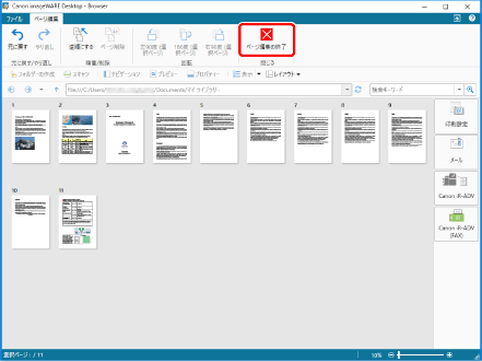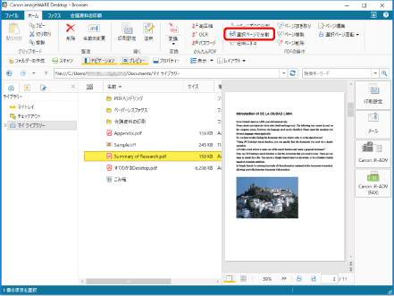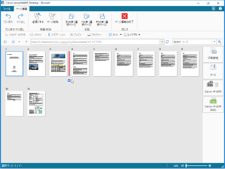 [Shift]キー、または[Ctrl]キーを押しながらページをクリックすると、複数のページを選択できます。 プレビューウィンドウの何も表示がない領域からマウスをドラッグして、複数のページを選択できます。 |