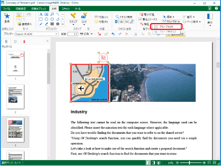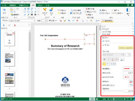 グループ化された注釈は、薄水色の線で囲まれています。 グループ化後も、グループ内の個別の注釈を選択して、プロパティーの編集や、テキストの変更などができます。 |