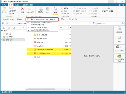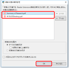 [PDF文書に変換]を選択した場合は、結合されずに、文書単位で変換されます。 [詳細を設定してPDF文書に変換]を選択した場合、[PDF文書の詳細設定]が表示されます。 |